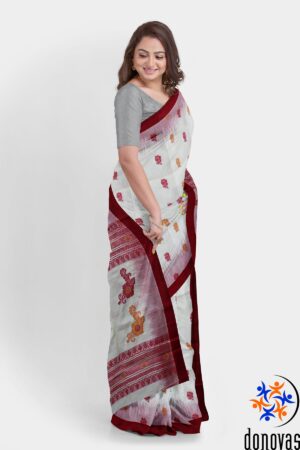 Depending on the fabric and style, these sarees are ideal for both formal events and casual gatherings. Pairing with the right blouse and accessories can take the saree from a day event to an evening occasion. Keep accessories minimal with a pair of gold or silver jewelry, like a simple chain, delicate earrings, and bangles, to enhance the understated elegance of the handloom fabric. Pair with silver or oxidized jewelry for a Boho or classic look. You can opt for a statement necklace or bangles to add some glamour. Traditional juttis, block heels, or elegant sandals work well with the understated elegance of handloom sarees.