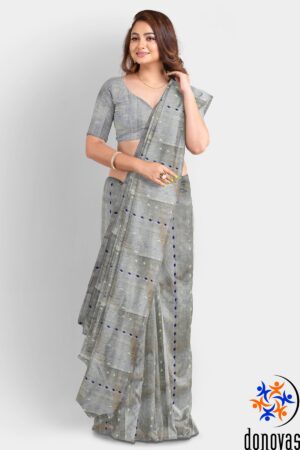 Cotton Jamdani is often considered elegant and versatile, suitable for both traditional ceremonies and everyday wear. It also holds significant cultural value in Bengali heritage, with the Jamdani style. Go for classic jhumkas (large bell-shaped earrings) or chandbalis (crescent-shaped earrings) in gold or oxidized silver with Bindi. Both are quintessential for a traditional Bengali look.