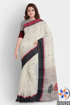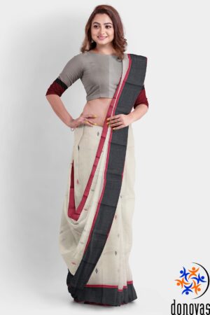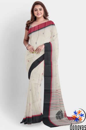 Pleasant Beige, Black & Red Handwoven Cotton Saree